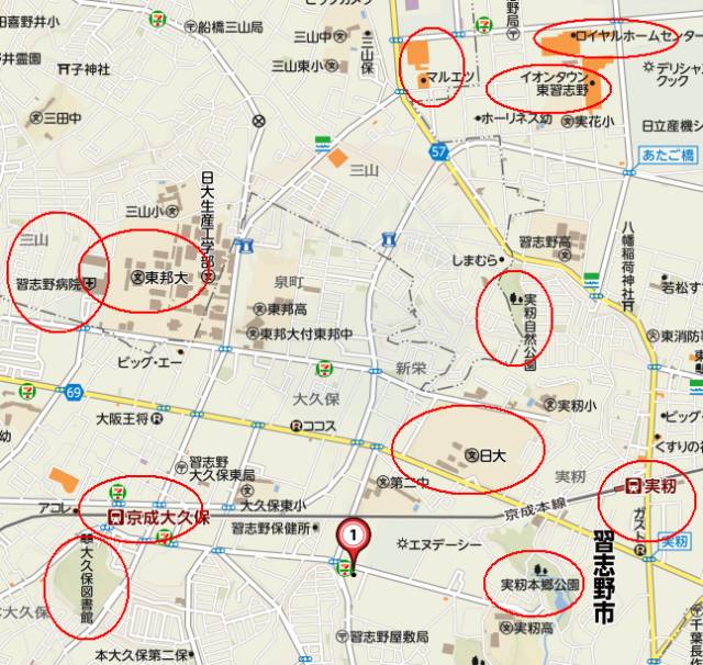 5、公共设施齐全:习志野病院,大久保图书馆,森林公园,高尔夫球场等。